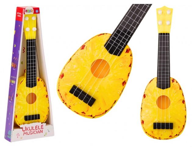 OtroÅ¡ki ukulele z motivom ananasa je popolna izbira za prve glasbene korake vaÅ¡ega malÄka. Å tiri mehke najlonske strune in lahka zasnova omogoÄajo udobno igranje in uÄenje. PrivlaÄen videz, varni materiali in spodbujanje ustvarjalnosti â vse v eni igrivi glasbeni igraÄki!