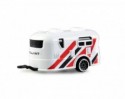 RC Pickup s prikolico 1:64 - moder je popolna izbira za vse ljubitelje modelov in RC vozil. Celotna karoserija je izdelana iz kovine (Die Cast), kar modelu zagotavlja izjemno vzdržljivost. Vozilo je opremljeno z LED osvetlitvijo spredaj in zadaj, kar omogoča osupljive svetlobne učinke tudi v temi. Gumijaste pnevmatike zagotavljajo natančno vožnjo, ki jo upravljate s priročnim mini daljinskim upravljalnikom z 2,4 GHz frekvenco. Zaradi svoje majhnosti lahko RC poltovornjak vzamete kamorkoli in ga vozite po vsaki ravni površini. Prikolico lahko po potrebi odstranite. TEHNIČNI PODATKI- Merilo: 1:64