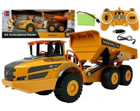 RC Double E Volvo kiper - Če je vaš otrok ljubitelj velikih gradbenih vozil, bo to zanj popoln komplet. Otroci pogosto igrajo vlogo odraslih, zato je popolna ideja za darilo daljinsko vodeni tovornjak Volvo. Zahvaljujoč temu kompletu se lahko vsak otrok počuti kot graditelj na pravem področju gradbeništva. Rumeno-črno vozilo je okrašeno z napisi VOLVO A40G. Gradbeno vozilo se upravlja z daljinskim upravljalnikom, ki je vključen v komplet. Igrača ima zvočne učinke. Majhen operater lahko z njim premakne stroj naprej, zavije desno in levo. Pesek, kamenje ali druge materiale lahko prevažamo na različna mesta. Zglobno vlečenje ima masivna, široka, gumijasta kolesa, ki otroku olajšajo igro zunaj, npr. na pesku ali tlakovcih. Poleg tega med vožnjo po stanovanju ne bodo opraskala tal. Ker so izdelane iz prožne gume, imajo zelo dober oprijem na spolzkih površinah. FUNKCIJE Naprej/nazaj, levo/desno, dvig/spust prikolice, hupa TEHNIČNI PODATKI - Velikost: 40 cm x 12 cm x 13 cm - Merilo: 1:26 - Velikost pakiranja: 49 cm x 18 cm x 19 cm - Baterija: polnilna 3,7V 400 mAh - USB polnilec - gumijaste pnevmatike - Stranska ogledala - funkcija nagibanja prikolice - LED luči - Zvok pri vzvratni vožnji ter zvok hupe VSEBINA: - RC kiper Volvo - daljinski upravljalnik (za delovanje potrebujete 2x 1,5V AA baterije, ki niso priložene) - USB polnilec - polnilna baterija 3,7V 400 mAh - navodila za uporabo https://youtu.be/oMESZVM7JI8 Proizvajalec: Double Eagle Uvoznik v EU: Aztek d.o.o., MedvodeOpozorila in varnostni ukrepi ob uporabi nekaterih kategorij igrač.