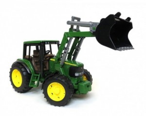 Bruder Traktor z nakladalko John Deere 02052 - Tako kot vsi traktorji serije Professional je tudi ta izvirni traktor lahko opremljen z dvojnimi pnevmatikami (nobena ni vključena). Sprednjo terensko os je mogoče krmiliti neposredno prek volana v vozniški kabini in prek priloženega podaljška krmilne palice, ki ga lahko otroci namestijo na volan skozi drsno streho v vozniški kabini. Popolnoma delujoč sprednji nakladalnik je mogoče enostavno pripeti in ponovno odklopiti z odstranitvijo sprednje uteži. Pokrov motorja je mogoče odpreti in tako razkriti blok motorja. Sliko dopolnjujejo pnevmatike s tekalno plastjo. Vse številne prikolice in vlečena orodja serije Professional je mogoče kombinirati s traktorjem John Deere 6920, tako da lahko mali "kmetje" ponovno uprizorijo delo na polju in pridelavo kmetijskih pridelkov. Lastnosti:- primerno za 4+ let