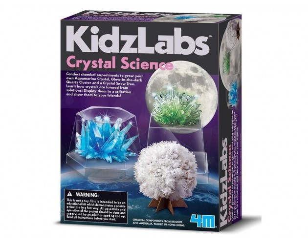 Izvedite kemijske poskuse in vzgojite akvamarinske kristale, mesec s kristali, ki se svetijo v temi, in snežno drevo iz kristalov. Spoznajte, kako iz raztopine nastanejo kristali! Razstavite jih kot zbirko in pokažite svojim prijateljem!