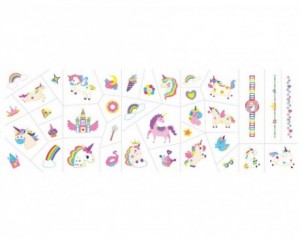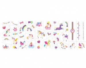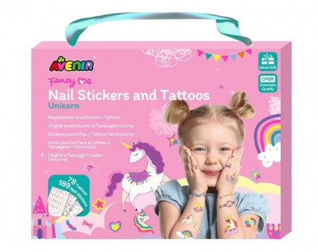 Nalepke za nohte in tattoo - Samorogi – Odkrijte čarobni svet samorogov in mavric z živobarvnim kompletom nalepk za nohte in modnih tatujev! S čudovitimi pravljičnimi motivi, ki bodo očarali vsako malo ljubiteljico fantazije, je ta komplet popolna izbira za izražanje domišljije in osebnega stila.Lastnosti izdelka: