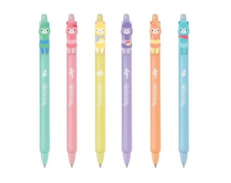 Svinčnik Colorino Erasable Lama - več barv je čudovita kombinacija funkcionalnosti in igrivega dizajna, ki bo popestril vsako pisalno mizo! Ta kemični svinčnik ima poseben mehanizem za brisanje, kar omogoča enostavno popravljanje napisanega besedila brez packanja. Njegova edinstvena lastnost je prikupna figura lame na vrhu, ki služi kot stikalo za vklop in izklop pisala.Odlična izbira za otroke, učence in ljubitelje živali, ki želijo svoje zapiske narediti bolj zabavne. Na voljo je v šestih pastelnih barvah (zelena, roza, rumena, vijolična, oranžna in modra), kar omogoča, da si vsak izbere svojega najljubšega.