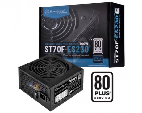 Silverstone ST70F-ES230. Skupna moč: 700 W, AC vhodna napetost: 180 - 264 V, AC vhodna frekvenca: 47 - 63 Hz Vtič konektorja matične plošče: 20+4 pin ATX, dolžina napajalnega kabla matične plošče: 50 cm. Namen: osebni računalnik, napajalna enota (PSU) Faktor oblike: ATX, 80 Plus Certificiranje: 80 PLUS. Barva izdelka: Črna, Premer ventilatorja: 12 cm, Število ventilatorjev: 1 ventilator. Širina: 150 mm Globina: 140 mm Višina: 86 mm
