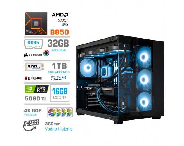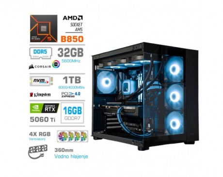 Računalnik Mega Mt S5 Ryzen 5 9600x/rtx5060ti-16gb/32gb-ddr5/1tb-4.0/750w/brez Os/črna Rgb + Estetski Napajalni Kabli [svetlo