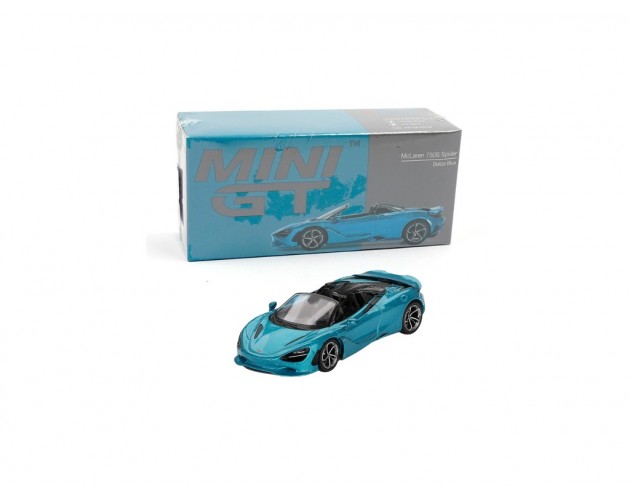 Mini GT McLaren 750S Spider je zbirateljski model v merilu 1:64, ki natančno ujame agresivno linijo sodobnega McLarena 750S Spider in je predstavljen v izraziti barvni kombinaciji Belize modra. Ta barva modelu podarja športno eleganco in vizualni poudarek, ki ga ne morete spregledati.