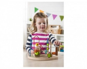 Lesena zabava igra EverEarth je priljubljena igrača, ki otrokom pomaga razvijati motorične spretnosti. Ob zibanju majhne gugalnice se krogci pričnejo premikati navzgor po žici. Rožica se ob tem vrti in potiska krogce naprej.