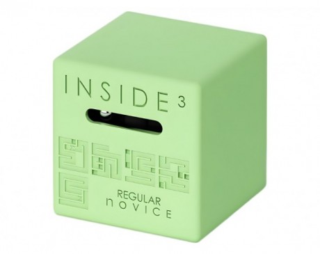 Inside3 3D labirint Regular NoVice je izvirna miselna igra, ki skriva zapleten tridimenzionalni labirint v kocki. Naloga igralca je, da majhno kroglico s pomočjo nagibanja in obračanja kocke pripelje od začetka do cilja – brez možnosti, da bi videl pot v notranjosti.Kroglica se premika skozi 5 plasti labirinta, pri čemer morate uporabiti svojo prostorsko predstavo, logiko in potrpežljivost. Edina pomoč sta diagram na sprednji in zadnji strani kocke, ki prikazujeta zemljevid posameznih nivojev. Črte označujejo poti, pike pa luknje, skozi katere kroglica prehaja med plastmi.