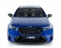 BMW M5 Touring (G99) je sodoben športni karavan, ki združuje družinsko uporabnost z vrhunskimi zmogljivostmi. Agresiven dizajn, široka drža, izraziti detajli in prepoznavna modra Marina Bay Blue barva poudarjajo njegov športni značaj.
