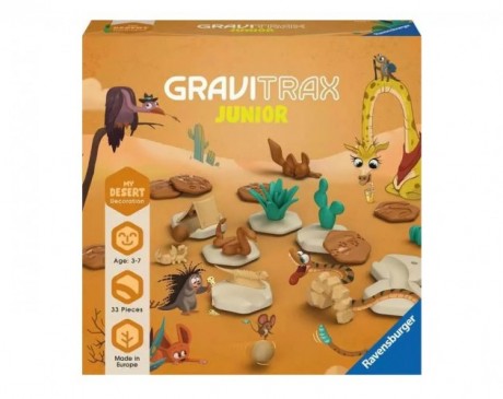 GraviTrax Junior razširitveni set My Desert Decoration je izjemna vstopnica v čudovit svet marmornatih prog, ki mladim nadobudnežem, starim 3 leta in več, odpira vrata v interaktivno igro.Opozorila in varnostni ukrepi ob uporabi nekaterih kategorij igrač.