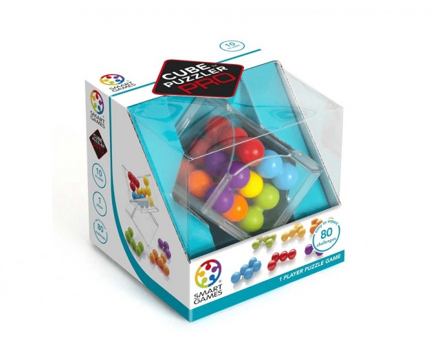Ohišje Cube Puzzler PRO je hkrati privlačena podloga za igro. Odprite prozorno kocko in jo iz škatlice za shranjevanje spremenite v igralno ploščo. Igra vključuje knjižico z 80 resničnimi 3D-izzivi in rešitvami.