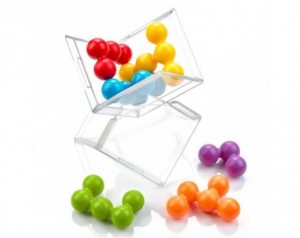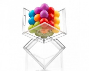 - Set vsebuje: Prozorna kocka, ki služi kot škatla za shranjevanje in igralna plošča, 6 pisanih sestavljank v obliki kroglic, knjižica z 80 izzivi in rešitvami