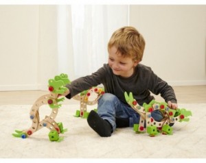 - Materiali visoke kakovosti: Leseni deli so izdelani iz bukovega lesa, medtem ko so plastični deli trpežni in odporni. Vsi materiali so varni za uporabo in zagotavljajo dolgo življenjsko dobo igrače.