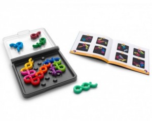 - Set vsebuje: Kompaktna igralna plošča s pokrovom, 11 mehkih delov sestavljank, knjižica s 120 izzivi in rešitvami, knjižica s pravili igre