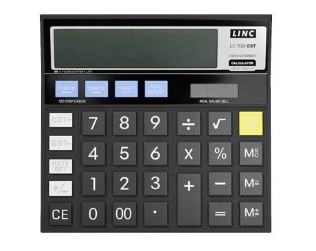 - Linc LC-512 GST je namizni kalkulator z 12-mestnim LCD zaslonom, primeren za uporabo doma, v šoli ali v pisarni