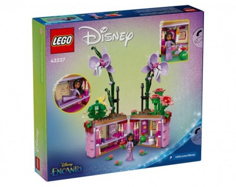 LEGO Disney Isabelin cvetlični lonec 43237 - S to igračo, ki jo je mogoče sestaviti za igro in prikazovanje, navdušite otroke in Disneyjeve oboževalce, stare nad 9 let, ki imajo radi umetnost in oblikovanje. Vsebuje cvetlični lonček, ki se odpre in razkrije skrito sobo, polno zabavnih filmskih podrobnosti, figurico Isabele, cvetja orhidej in kaktusov, ki se postavijo v privlačen prikaz, ko je cvetlični lonček zaprt.