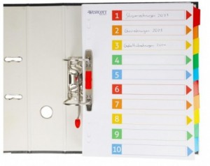 - kartonski pregradni kartoni, namenjeni ločevanju dokumentov v registratorju