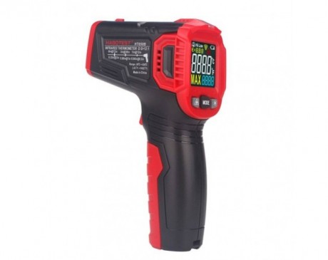 Pirometer je opremljen z razmerjem 12:1 D:S in laserjem, ki zagotavlja natančne meritve temperature v območju od -30°C ~ +550°C. Poleg tega je odzivni čas naprave manj kot 0,5 sekunde. Nastavite lahko tudi emisivnost od 0,10 do 1,00 in spremenite merske enote med °C ali °F.