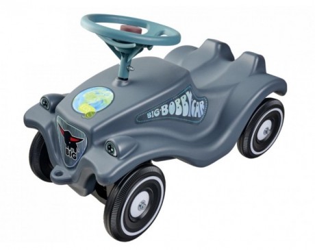 Poganjalec BIG Bobby Car Classic Eco - Poganjalec ohranja legendarno obliko priljubljenega otroškega vozila in jo dopolnjuje z bolj okolju prijazno izdelavo. Karoserija in volan sta izdelana iz reciklirane plastike, prav tako tudi kolesa, kar daje vozilu značilno srebrno sivo barvo, ki se lepo ujema s sivo-turkiznim volanom in nalepkami z motivom planeta.Ta klasični poganjalec je zasnovan posebej za najmlajše voznike. Ergonomsko oblikovan sedež podpira pravilen položaj telesa in spodbuja razvoj motorike pri otrocih. Protizdrsni varnostni volan z mehansko hupo omogoča enostavno upravljanje, medtem ko štiri robustna in obrabi odporna kolesa zagotavljajo stabilno in varno vožnjo.