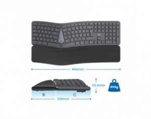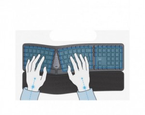 Tipkovnica s svojo ukrivljeno zasnovo omogoča naravno držo med tipkanjem ter zmanjšuje napetost v zapestjih in v podlakti.