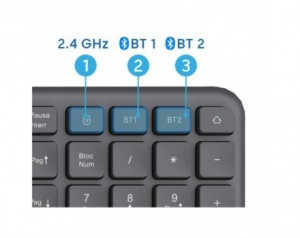 Omogoča brezžično povezavo z 2.4GHz USB-A sprejemnikom, poveže pa se lahko tudi z dvema Bluetooth napravama. Hkrati je lahko seznanjena s tremi napravami, med katerimi preklapljate s tipkami. Poveže se lahko z Windows, Mac in Android napravami.