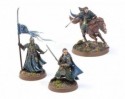 3 plastične miniature: Elrond mounted, Elrond peš in High Elf warrior z banerjem