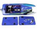 RC Katamaran Arrow BL Jet moder - Ta 400 mm dolgi katamaran doseže hitrost do 30 km/h in lahko obvlada skoraj vsako vodno površino! Inovativni jet pogon vam omogoča več možnosti kot običajni propelerski pogon, saj vsrkava vodo pod čolnom (zaščiteno z rešetko) in jo na zadnji strani izloča v obliki stiskanega curka, kar zagotavlja močen pogon in hiter pospešek. Priložena 3S 11,1V Li-Ion baterija zagotavlja dovolj energije za vse vaše manevre. Veje, kamenje ali druge ovire? Ni problema, vaš dirkalni čoln jih preprosto prevozi. Trup je opremljen s hitrim zapiralom za menjavo baterije in dodatnim pokrovom za zaščito pred vodo. Vgrajeni brezkrtačni motor in ESC sta vodno hlajena, zanesljiv sistem oddajnika 2,4 GHz pa ponuja dodatne funkcije, kot je nastavljiva hitrost, tako da lahko čoln prilagodite svojim potrebam in zmogljivostim. FUNKCIJE Naprej/nazaj, levo/desno TEHNIČNI PODATKI Dimenzije: 40 × 13 × 10 cm Čas delovanja: 10-12 min Čas polnenja: 90-120 min Hitrost: do 30 km/h Uravnavanje hitrosti ter dvojna hitrost za krmiljenje Domet: 80-100 metrov Material: ABS plastika Motor: krtačni, vodno hlajenje motorja Servo: Mini Digital JR konektor Baterija: Li-Ion 3S 11,1V 2000mAh 15C, T priključek PAKET VSEBUJE - RC katamaran Arrow BL Jet - Polnilna baterija Li-Ion 3S 11,1V 2000mAh - USB polnilec za baterijo - 2,4GHz oddajnik (za delovanje potrebujete 4x 1,5V AA baterije, ki niso priložene) - navodila za uporabo Proizvajalec: AMEWI Trade e.K.Opozorila in varnostni ukrepi ob uporabi nekaterih kategorij igrač.