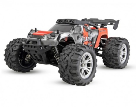 RC M-Land Truggy 4WD rdeč - Premagajte vsak teren s kompaktnim in močnim truggyjem v merilu 1:16, zasnovanim tako za začetnike, kot za napredne navdušence RC. Z dvema preklopnima stopnjama hitrosti prek daljinskega upravljalnika in največjo hitrostjo do 48 km/h lahko uživate v nadzorovani vožnji ali visokih hitrostih, odvisno od vaših spretnosti in terena. Truggy je zasnovan za pustolovščine na prostem in ima zaščiteno, zaprto konstrukcijo, ki ščiti notranjo elektroniko, medtem ko vzmetenje in profilirane gumene pnevmatike omogočajo enostavno vožnjo po zahtevnem terenu. Sprednje in strešne LED-luči zagotavljajo odlično vidljivost v slabih svetlobnih pogojih, sprejemnik/krmilnik pa omogoča celo dodatne LED-razširitve. Ključna je vzdržljivost: glavni zobnik, konični zobniki in diferenciali so izdelani iz trpežne, dolgo življenjske plastike, diferenciali pa so nameščeni na krogličnih ležajih za nemoteno delovanje. Funkcija dvojne hitrosti krmiljenja in nastavljiv kot krmiljenja omogočata natančno nastavitev upravljanja, funkcija vzvratnega krmiljenja pa dodatno nadzor. Z ergonomskim daljinskim upravljalnikom 2,4 GHz imate zanesljiv nadzor v dosegu do 100 metrov.Lastnosti: