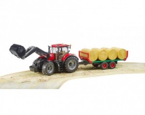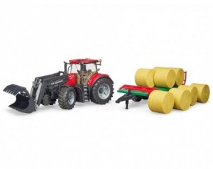 Bruder traktor Case z nakladalko in balami 03198 - Novi model BRUDER v merilu 1:16 se z vidika oblikovanja, funkcionalnosti in kakovosti ponaša z vsem tem, v skladu z motom podjetja "tako kot pravi". Kabina je v celoti zastekljena in ima vrata, ki jih je mogoče enostavno odpreti. Zložljiv pokrov motorja omogoča dostop do impresivnega motorja. Odlična vodljivost in udobje vožnje zaradi vgrajene nihajne osi ter podaljška volana, ki je vstavljen skozi streho. Za večjo zabavo je bil na ta model nameščen popolnoma funkcionalen prednji nakladalnik. Višinsko nastavljiva zadnja sklopka je združljiva z vsemi prikolicami serije Professional. Nova snemljiva kolesa še povečajo zabavo. Samoumevno je, da so s tem traktorjem združljive vse kmetijske prikolice in oprema BRUDER. Lastnosti:- primerno za 4+ let