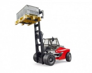 Bruder viličar Linde HT 160 02513 - Modeli Lindejeve serije HT so hitri in varčni pri ravnanju s težkimi bremeni. Zlasti pri prevozu na dolgih razdaljah ti modeli zagotavljajo posebno visoko zmogljivost rokovanja. Kot novost podjetja BRUDER je v svetu motivov gospodarskih vozil na voljo podroben model Linde HT160 iz te serije. Izvirni model navdušuje z nosilnostjo 16 ton, višino dviga 4 metre in najsodobnejšimi zasloni v vozniški kabini. BRUDERjev model nikakor ni slabši od tega. Sodobna voznikova kabina je v celoti zastekljena in ponuja opcijsko razpoložljivo figuro bworld odličen razgled v vse smeri. Viličar je opremljen z dvojnim dvižnim jamborom, katerega funkcije dvigovanja in nagibanja je mogoče upravljati z eno roko. Model ima enostavno krmiljenje, ki otrokom omogoča manevriranje v najbolj ozkih prostorih, tako kot original. Za prevoz večjih tovorov so v sklopu dobave vključene paleta in 3 mrežaste škatle. Še posebej dobro se ujemata tovornjak Scania z nakladalno roko (št. izdelka 03551) in manjši Lindejev model H30D (št. izdelka 02511) iz širokega Bruderjevega transportnega programa. Lastnosti:- primerno za 4+ let