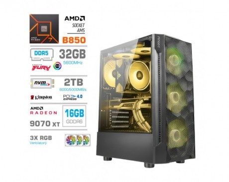 Računalnik Mega Mt S7 R7-9700x/rx9070 Xt/32gb-ddr5/2tb-4.0/750w/brez Os Rgb + Estetski Napajalni Kabli [rumena / Črna]
