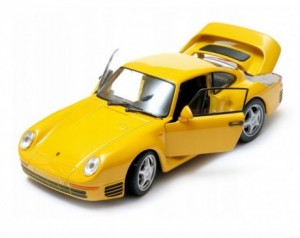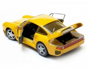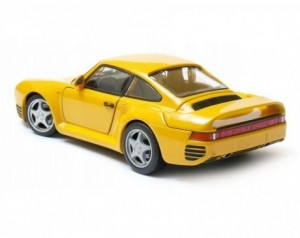 Kovinski avtomobil Porsche 959 rumen ima naslednje lastnosti:- merilo 1:24
