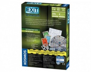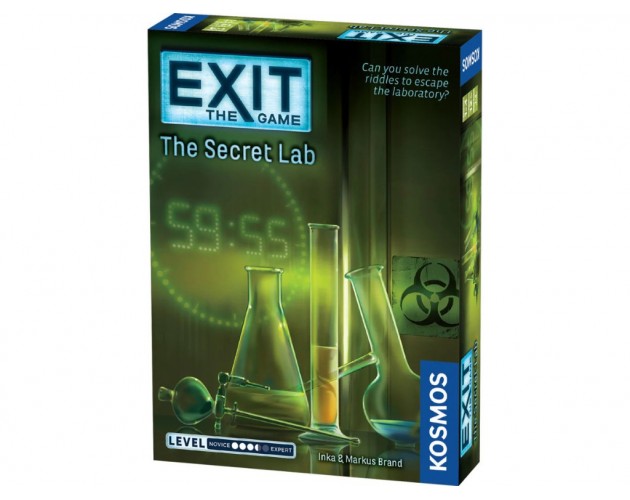 Družabna igra Exit - The Secret Lab - Kot prostovoljci ste se prijavili na znanstveno raziskavo v skrivnostnem laboratoriju. Po prihodu vas pričaka tišina – v laboratoriju ni nikogar, le mize z epruvetami in skrivnostnimi instrumenti. Nenadoma iz ene epruvete začne izhajati dim in kmalu se počutite omotične. Ko se zbudite, ugotovite, da so vrata zaklenjena, pred vami pa ležita zvezek in nenavaden dekoderski disk. Zdaj se morate zanesti le na svoj um in logiko, da odkrijete, kaj se je zgodilo in kako pobegniti iz laboratorija.Opis igre