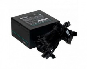 DeepCool PF700. Skupna moč: 700 W, AC vhodna napetost: 220 - 240 V, AC vhodna frekvenca: 50 Hz. Priključek matične plošče: 20+4 pinski ATX, dolžina napajalnega kabla matične plošče: 55 cm, dolžina napajalnega kabla SATA: 450,600,750,900 mm. Namen: PC / strežnik, napajalna enota (PSU) Faktor oblike: ATX, 80 Plus Certificiranje: 80 PLUS. Barva izdelka: Črna, Hlajenje: Aktivno, Premer ventilatorja: 12 cm. Priloženi kabli: AC.