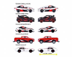 Komplet predstavlja izbrane ikonične modele Toyota, ki izstopajo po svojem značaju – od športnih coupéjev do robustnega poltovornjaka. Avtomobilčki merijo približno 7,5 cm, kar pomeni, da so popolne velikosti za majhne roke, enostavno prenašanje in vsakodnevno igro. Zahvaljujoč trpežni konstrukciji so pripravljeni na dirke, skoke, domiselne zgodbe in vse izzive otroške domišljije.