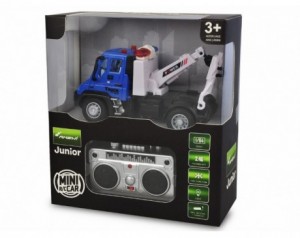 RC mini tovornjak 1:64 - moder je prikupen in okreten daljinsko voden vlečni tovornjak, zasnovan posebej za mlajše otroke. Primeren je že od 3. leta starosti dalje in omogoča varno, a hkrati zelo zabavno igro tako v notranjih prostorih kot na prostem. S svojo funkcionalno zasnovo spodbuja otroško domišljijo ter zanimanje za vozila in tehniko skozi igro vlog.Tovornjak je opremljen z iztegljivim vlečnim kavljem in zložljivo rampo, ki ju otrok upravlja ročno. Tako lahko realistično posnema reševanje pokvarjenih vozil in njihov prevoz do »delavnice«. Dodatno privlačnost zagotavlja rumena LED-osvetlitev na sprednjem delu, ki poudari detajle vozila in poskrbi za še bolj zanimivo igralno izkušnjo. Kljub majhnosti je model stabilen, vodljiv in primeren za učenje osnov daljinskega upravljanja.