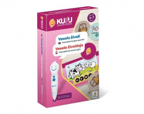 Interaktivna Memo igra Kuku - Vesele živali (brez pisala) je primerna za otroke od 3. leta naprej. Igra spomin je priljubljena, vsem poznana igra. Če jo igraš s pisalom Kuku, pa jo spoznaš v povsem novi luči, saj združuje tako vizualni kot slušni spomin. Na voljo je tudi več različic igre. S pomočjo te igre bodo otroci prepoznavali zvoke živali, ki nas obdajajo. Kuku – Zabavno učenje je edinstven sistem učenja, ki prinaša obilo informacij in zabave. S pisalom se na rahlo dotaknite slike ali besedila in zaslišali boste ustrezne informacije, zvok ali glasbo. Interaktivno pisalo ponuja vedno nova doživetja. POZOR: IGRA DELUJE LE Z INTERAKTIVNIM PISALOM KUKU – ZABAVNO UČENJE! INTERAKTIVNO PISALO NI PRILOŽENO. Za pravilno delovanje interaktivnega pisala je potreben prenos ustreznih zvočnih datotek. Za prenos zvočnih datotek je potreben računalnik. KUKU – Zabavno učenje je edinstven didaktični koncept, pri katerem otroci na zabaven in privlačen način pridobijo obilo zanimivih in poučnih informacij. Igranje s pomočjo interaktivnega pisala KUKU je posebno učno doživetje, saj se besedam in slikam z enim dotikom pridružijo tudi zvoki. Več na www.zabavnoucenje.com https://www.youtube.com/watch?v=h1YHZGRgFWQ Uvoznik v EU : Singa d.o.oOpozorila in varnostni ukrepi ob uporabi nekaterih kategorij igrač.