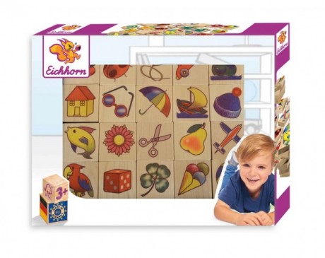 Eichhorn Lesen spomin je primeren za otroke starejše od treh let. Set vsebuje 40 kosov. Na 40 lesenih delčkih iz prvorazrednega bukovega lesa se nahaja 20 barvitih sličic, s katerimi bodo dečki in deklice povadili svoj kratkoročni spomin, prostorski vid in fino motoriko. Zahvaljujoč naravnemu materialu se bodo otroci z igri igrali na pristen način, v sobici bo ustvarila domače in prijetno vzdušje. Opozorila in varnostni ukrepi ob uporabi nekaterih kategorij igrač.