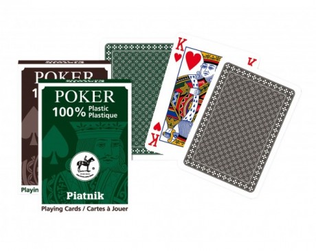Poker plastične igralne karte Piatnik so komplet igralnih kart za poker in druge igre s kartami. Komplet vsebuje 55 plastičnih kart dimenzije 63 × 88 mm. Zelena ali črna hrbtna stran. Opozorila in varnostni ukrepi ob uporabi nekaterih kategorij igrač. Proizvajalec: Piatnik Hutteldorfer str 229-331, A-1140 Wien
