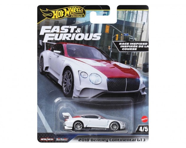 Hot Wheels 2018 Bentley GT3 Continental v merilu 1:64 predstavlja dirkalno različico prestižnega britanskega športnega avtomobila. Bentley Continental GT3 je bil razvit za profesionalna tekmovanja v razredu GT3 in združuje razkošno dediščino znamke Bentley z vrhunskimi dirkaškimi zmogljivostmi ter napredno aerodinamiko.