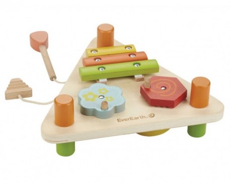 Dvostranski glasbeni komplet EverEarth, na katerem lahko otroci razvijajo svoj glasbeni talent. Vključuje ksilofon, vrtavko, boben in kladivca. Pravi mali orkester! Igrača razvija posluh, ritem in motoriko.