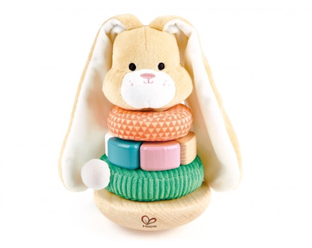 Hape Zajček - natikanka je odlična izbira za starše, ki iščejo kakovostno in poučno igračo za svoje malčke. Zajček je sestavljen iz petih delov, ki vključujejo tri obroče različnih velikosti, glavo z ušesi in podstavek, na katerega otroci nalagajo obroče. Vsak obroč je skrbno izdelan iz visokokakovostnega lesa in prebarvan z nestrupenimi barvami, ki so varne za otroke. Eden izmed obročev ima celo vgrajeno vrvico z repkom, ki ob vlečenju oddaja zabaven klikajoč zvok, kar spodbuja otrokovo zanimanje in raziskovalno igro. Igrača je zasnovana za otroke od 10. meseca naprej in pomaga razvijati različne spretnosti. Zlaganje obročev krepi fino motoriko in koordinacijo rok in oči, hkrati pa otroci skozi igro spoznavajo osnovne koncepte velikosti, oblik in barv. Poleg tega igrača spodbuja logično razmišljanje in reševanje problemov, saj se otroci učijo pravilnega zaporedja zlaganja obročev. Lesena natikanka je trajnostna igrača, ki je prijazna do okolja in zasnovana tako, da prenese dolgoletno uporabo. Njene kompaktne dimenzije (dolžina 10,2 cm, širina 10,2 cm, višina 18,5 cm) omogočajo enostavno shranjevanje, prav tako pa je zaradi svoje lahkosti primerna tudi za igro na poti. Zaradi varne izdelave in prijaznega dizajna v obliki zajčka bo zagotovo postala priljubljena igrača vsakega malčka. Popolna je za darilo ob rojstnem dnevu, praznikih ali kot igrača, ki bo v otrokov vsakdan prinesla veselje in koristno učenje.Vzdrževanje igrače: