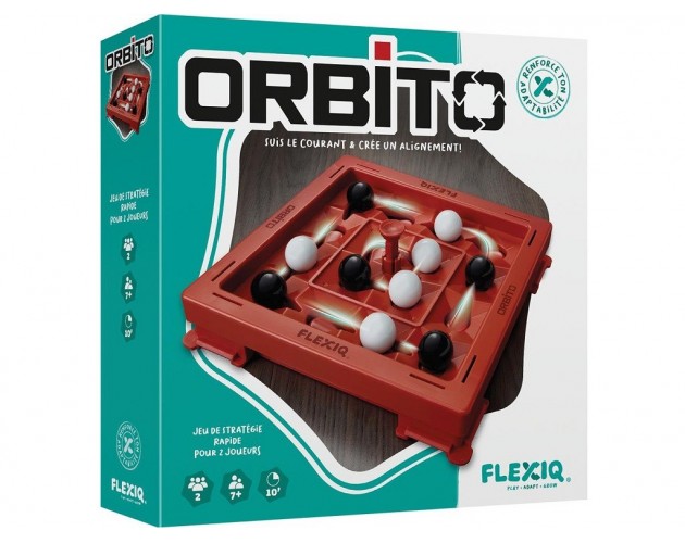 FLEXIQ strateška igra Orbito je izjemno napeta strateška igra s premikajočo se igralno ploščo, zasnovana za igralce, ki si želijo izzivov v načrtovanju in prilagajanju na hitre spremembe. Cilj igre je uskladiti 4 frnikole iste barve v vrsto – vodoravno, navpično ali diagonalno – na posebni premikajoči plošči, ki vsako potezo spremeni razporeditev vseh frnikol. S pritiskom na
