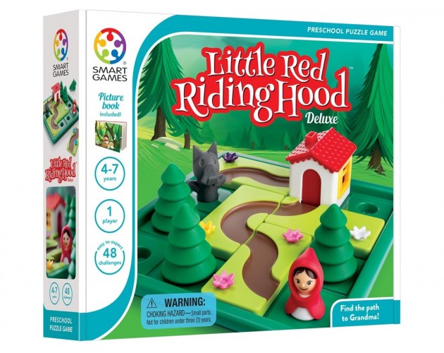 Smart Games Rdeča kapica - Deluxe - Poiščite pot do babičine hiše! Ali lahko na igralno ploščo položite vse koščke, da bo Rdeča kapica prišla do babičine hiše? Potem lahko igraš igro z volkom! Toda pazite, morda bo do tja prišel hitreje! Poskusite rešiti te izzive tako, da naredite dve poti do babičine hiše: eno za Rdečo kapico in eno za volka.