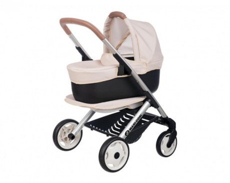 Zložljiva strehica, varnostni pas za punčko in prostorna košara za dodatke ali igrače dodajo vrednost tej kakovostni igrački. Nosilka se enostavno sname in prenaša zahvaljujoč udobnemu ročaju. Voziček je primeren za vse vrste punčk in dojenčkov do 42 cm (punčka ni vključena).