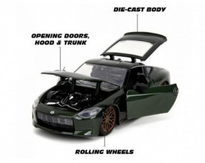 Eleganten, močan in ikoničen - Nissan Z iz leta 2023 je prava ikona, ki predstavlja vse lastnosti, ki odlikujejo tudi filme Fast & Furious. Ni presenetljivo, da je ta avtomobil naredil svojo filmsko pojavnost v 10. delu filmske serije. Miniaturna različica avtomobila iz filma je natančna in podrobna, saj združuje eleganco in moč v tem vrhunskem modelu.