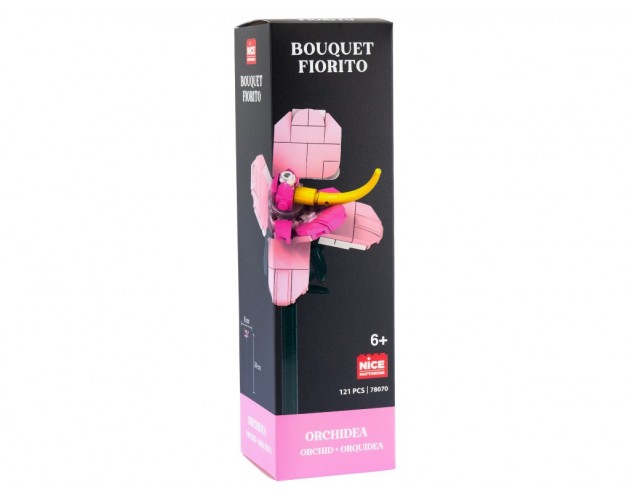 Kocke roža - Orhideja – set vsebuje 121 koščkov, s katerimi lahko sestavite eleganten cvet Orhideje, ki nikoli ne oveni. Komplet je živahen gradbeni set, primeren za mlade graditelje in ljubitelje cvetlic. Vsaka kocka je izdelana iz trpežne in varne plastike, ki omogoča enostavno sestavljanje in dolgo obstojnost.Model vključuje steblo dolgo 30,5 cm, širino cvetnih listov 9 cm in višino cveta približno 7,5 cm, kar omogoča realističen in dekorativen izgled. Set je združljiv z drugimi cvetovi iz serije Flower Mattoncini, kar omogoča ustvarjanje barvitih in unikatnih cvetličnih aranžmajev.