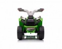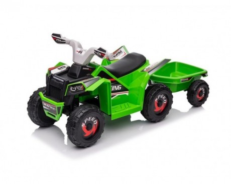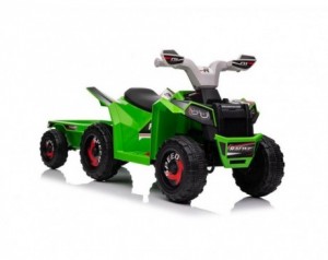 Mini quad na akumulator s prikolico - zelen je primeren za enega otroka. Set vključuje tudi prikolico, ki jo lahko priključite na štirikolesnik. Otroški štirikolesnik je primeren za otroke starejše od dveh let.