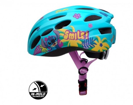 Otroška kolesarska čelada Stitch In-Mold 52-56cm - Ta otroška čelada, izdelana s tehnologijo IN-MOLD*, zagotavlja izjemno udobje in varnost, saj omogoča stabilno strukturo čelade ter nizko težo, kar je ključno za zaščito otroške glave. Čelada je zasnovana tako, da ponuja maksimalno zaščito in hkrati ostaja lahka, kar pripomore k udobju med daljšimi vožnjami. Zunanja lupina čelade je izdelana iz visokokakovostnega polikarbonata, kar čeladi zagotavlja trpežnost in odpornost na udarce. Notranji del je sestavljen iz črne EPS pene, ki učinkovito absorbira udarce in s tem zmanjšuje tveganje za poškodbe pri morebitnih padcih. Za dodatno udobje so v čeladi nameščene mehke oblazinjenosti, ki so odstranljive in pralne, kar omogoča enostavno vzdrževanje čelade ter ohranjanje higiene. Čelada je opremljena s 17 prezračevalnimi odprtinami, ki zagotavljajo učinkovito kroženje zraka in preprečujejo pregrevanje glave med aktivnostjo.Ključne lastnosti: